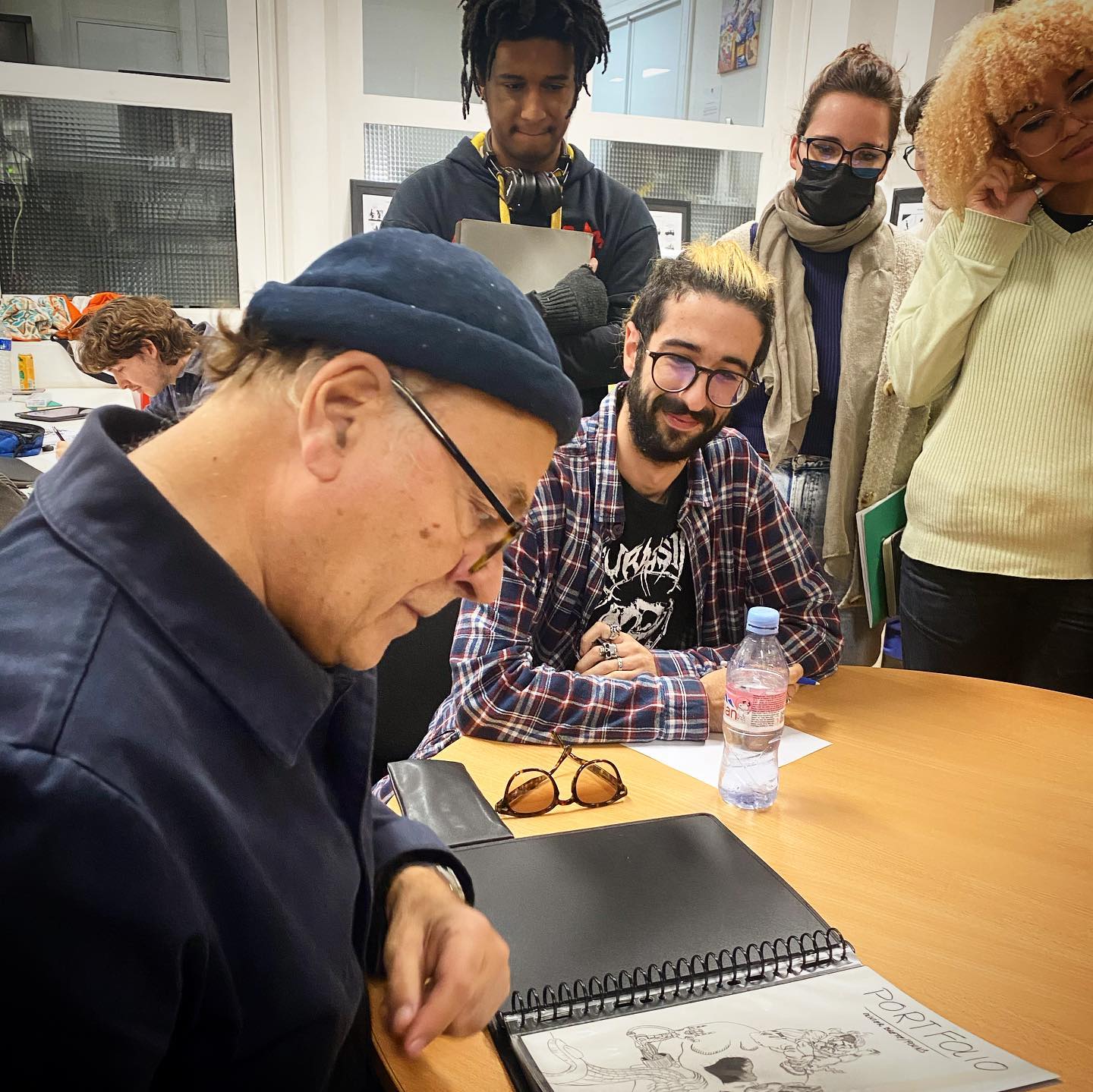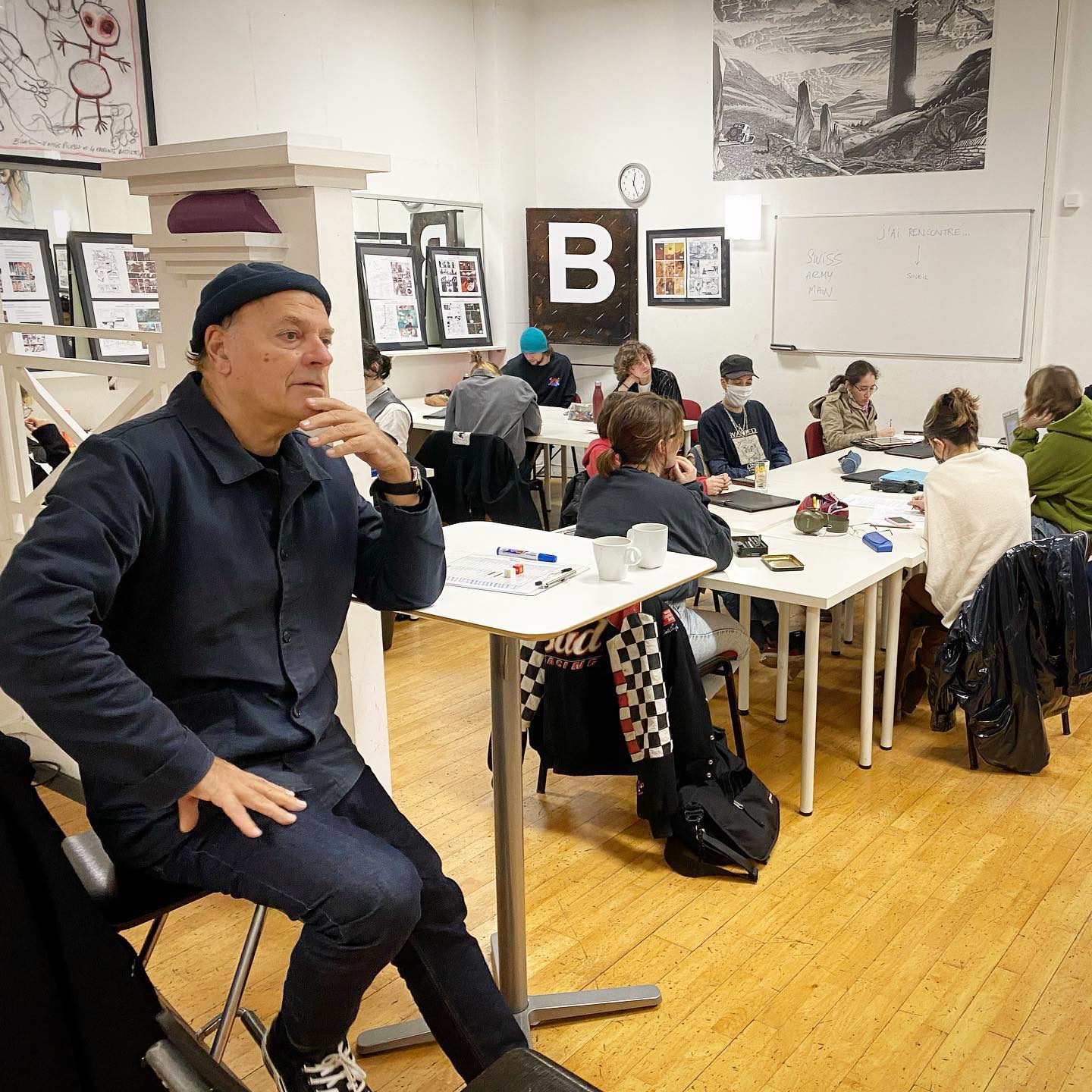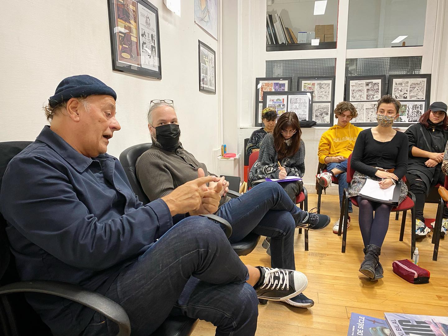 Nouvelle séance de travail pour Enki Bilal auprès des étudiant·e·s de la Promotion Bilal : l’occasion de faire le plein de conseils judicieux et d’encouragements sincères.