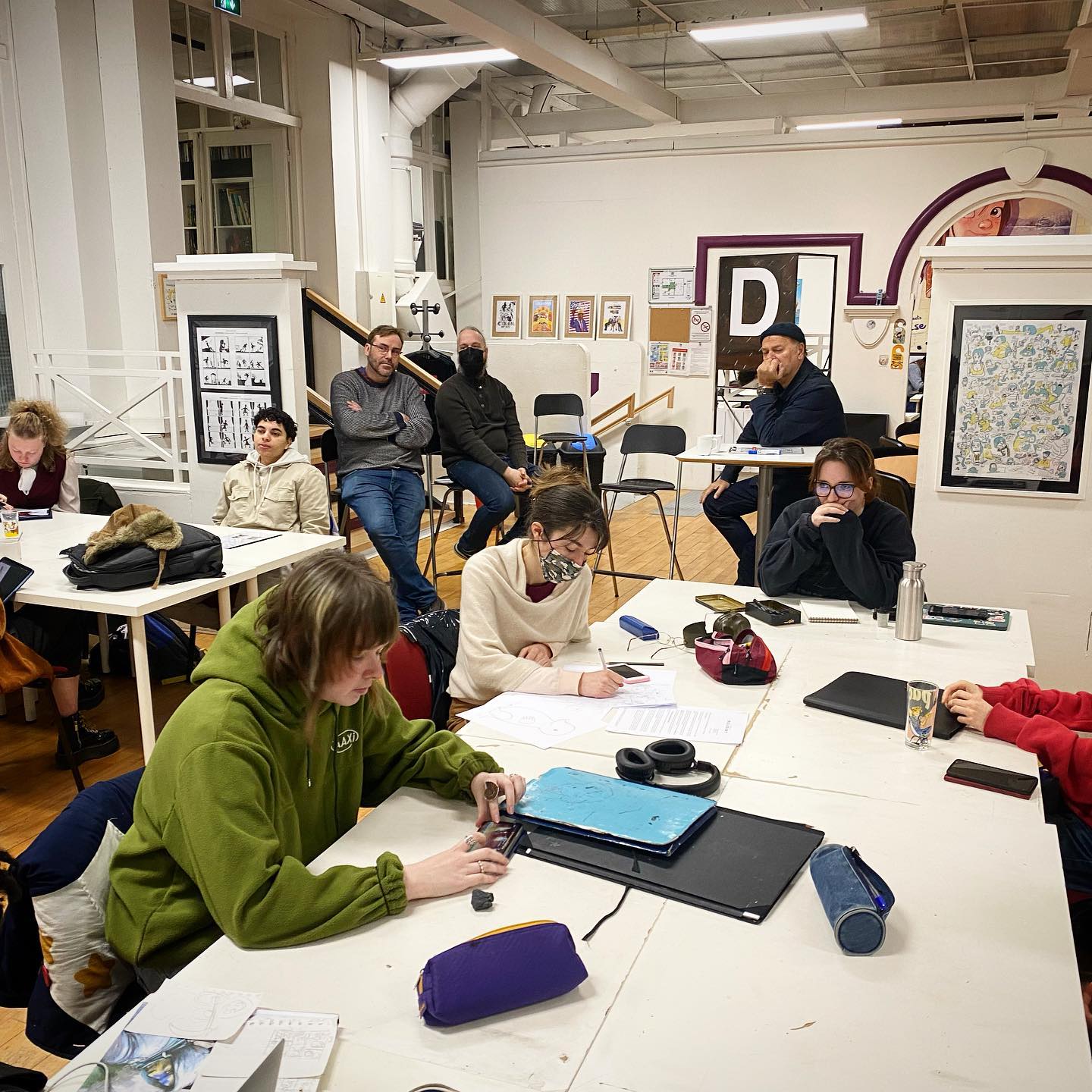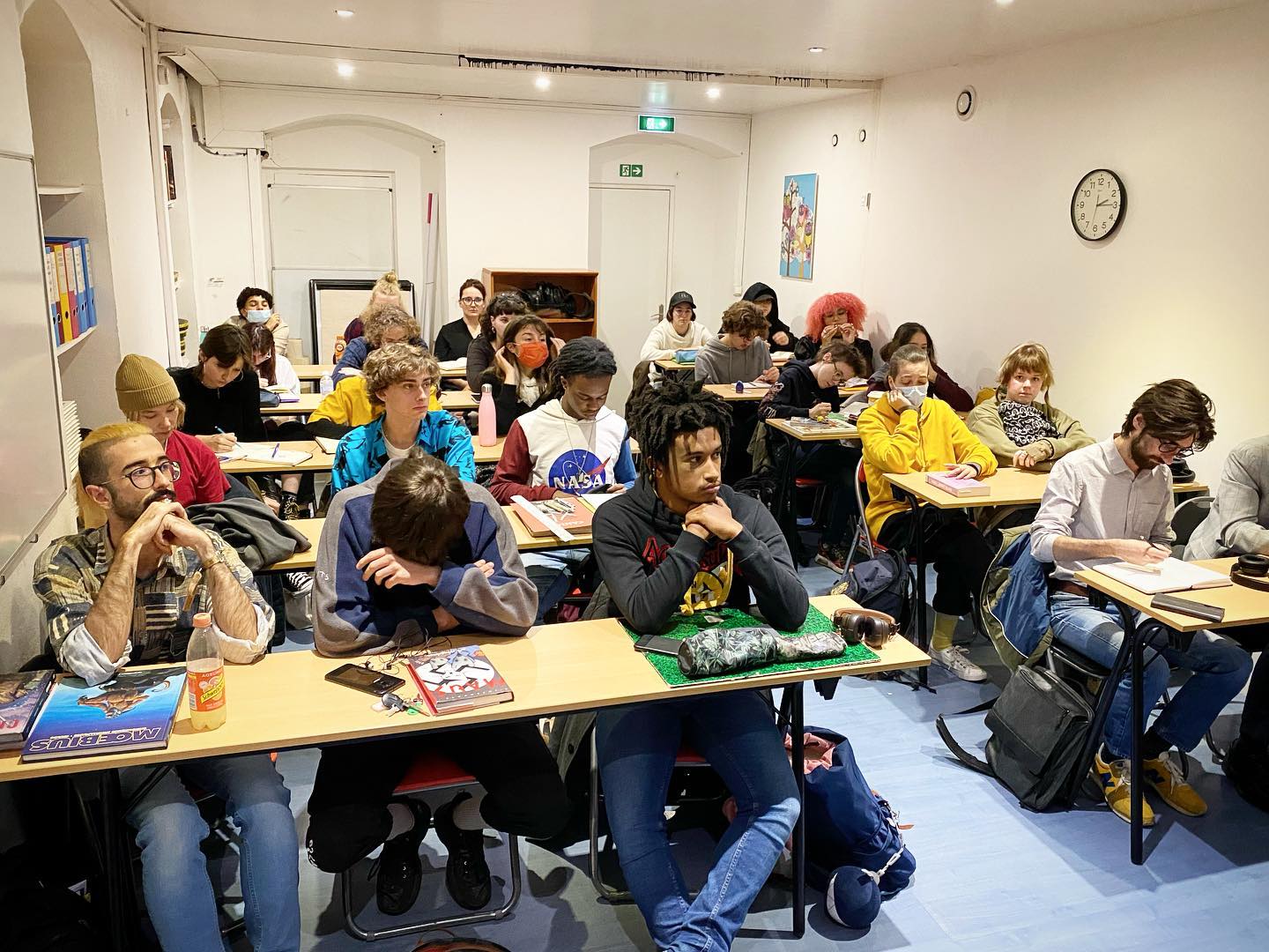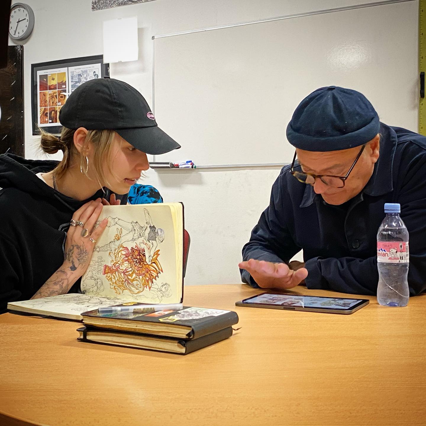 Nouvelle séance de travail pour Enki Bilal auprès des étudiant·e·s de la Promotion Bilal : l’occasion de faire le plein de conseils judicieux et d’encouragements sincères.