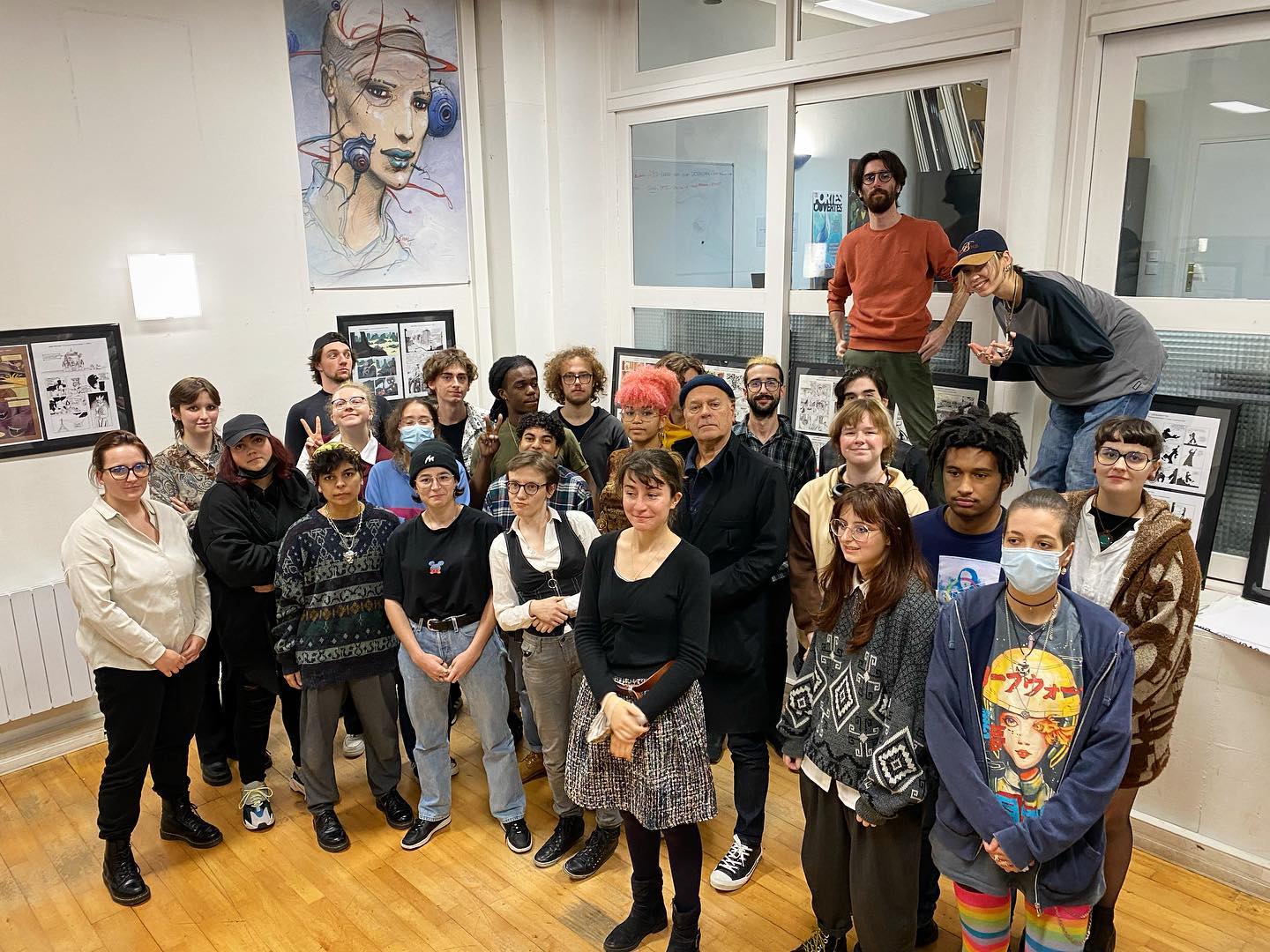 Nouvelle journée de travail avec Enki Bilal auprès des 2e année qui présentaient leurs projets d’histoires courtes pour le recueil à paraître aux Éditions Delcourt.