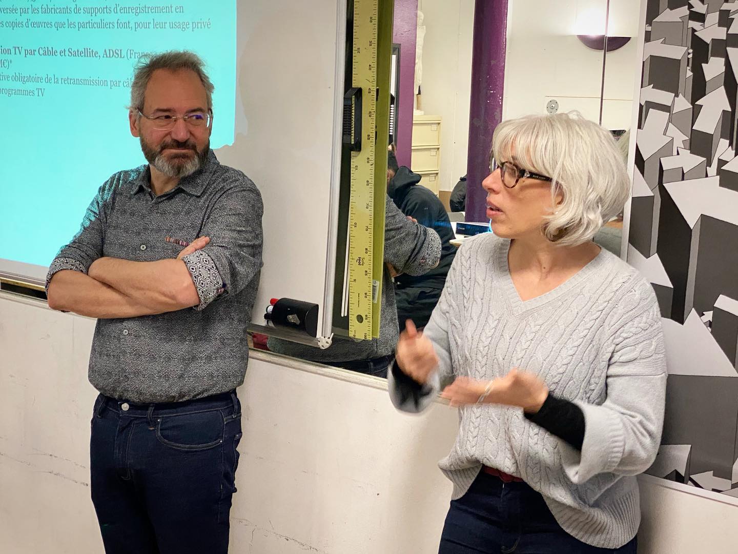 Aujourd’hui, Laurent Mélikian et Elvire DeCock sont venus présenter l’ADAGP à la promotion Andreas (3e année), dans le cadre du cycle Droits et Devoirs de l’Auteur.