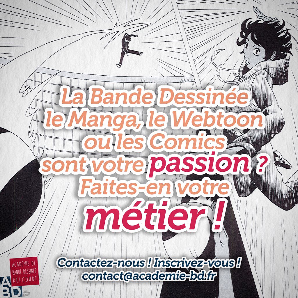 Pour vous inscrire à l’Académie de Bande Dessinée DELCOURT et rejoindre la prochaine promotion, écrivez-nous à : contact@academie-bd.fr