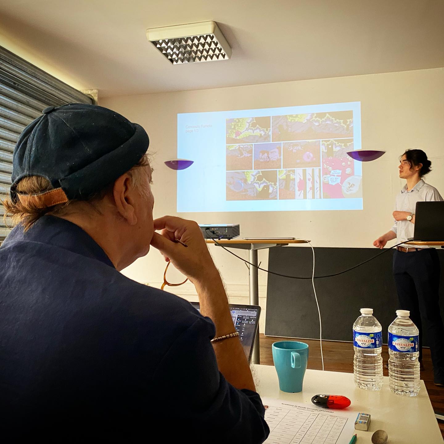 À leur tour les étudiant·es de la promotion Bilal sont passé·es devant leur jury de 2e année. Sorte de répétition générale avant leur ultime épreuve de fin d’étude, l’année prochaine, ce jury était présidé par leur parrain : le bienveillant mais toujours juste Enki Bilal !